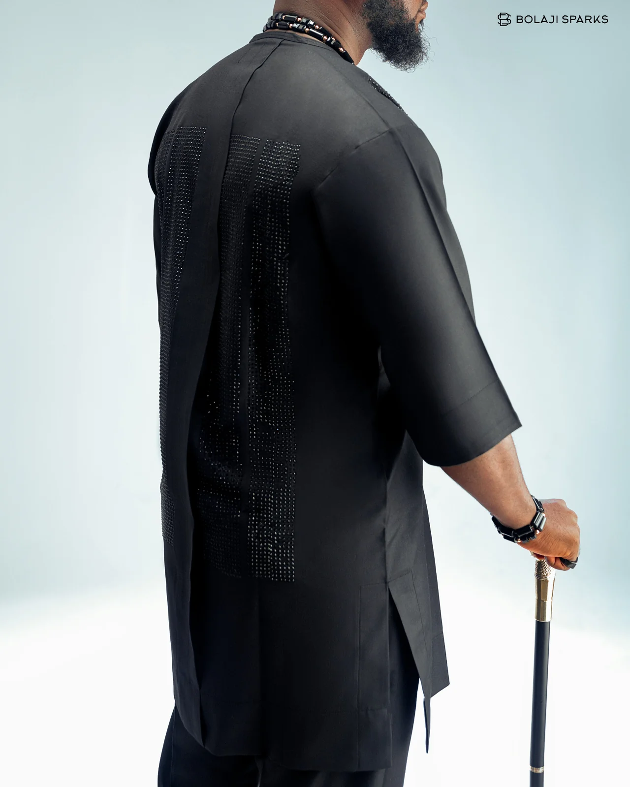 Men’s Black Luxury Senator Native Wear with Front and Back Rhinestone Detailing