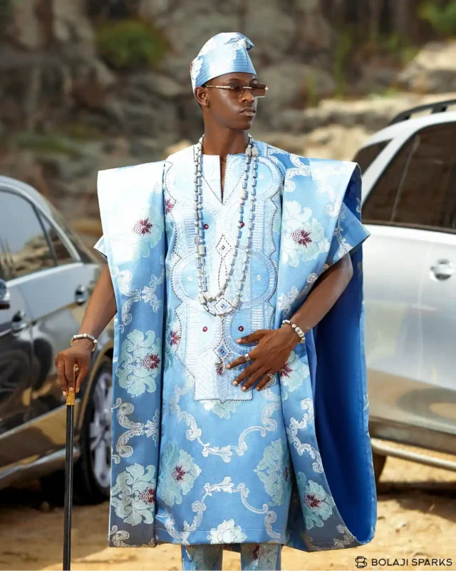 Azure Majesty Embroidered Agbada Set